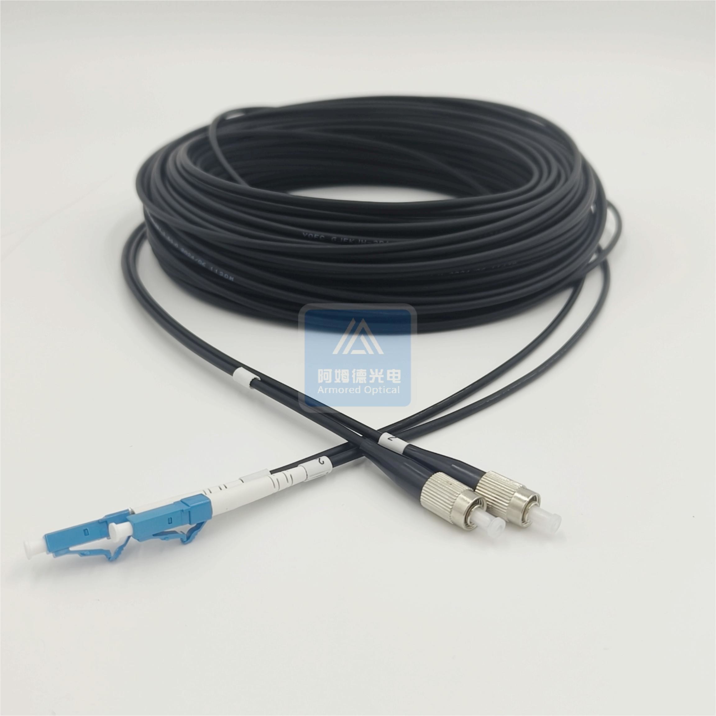 Duplex Armored Patch Cord 50m FC-LC Connector 5mm Black LSZH FTTH FTTX Rodent Resistant Flame Resistant,